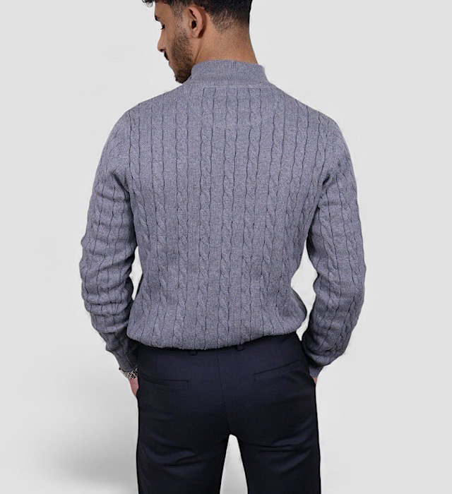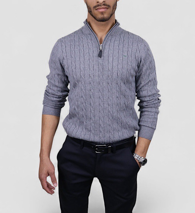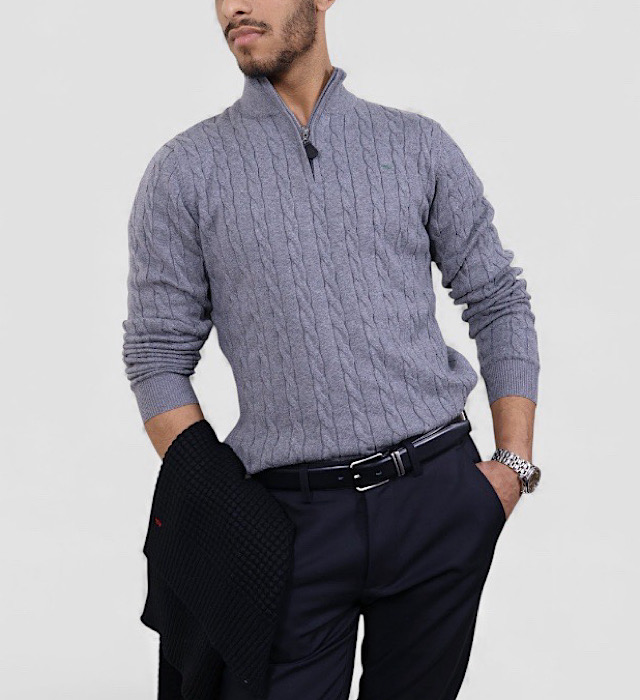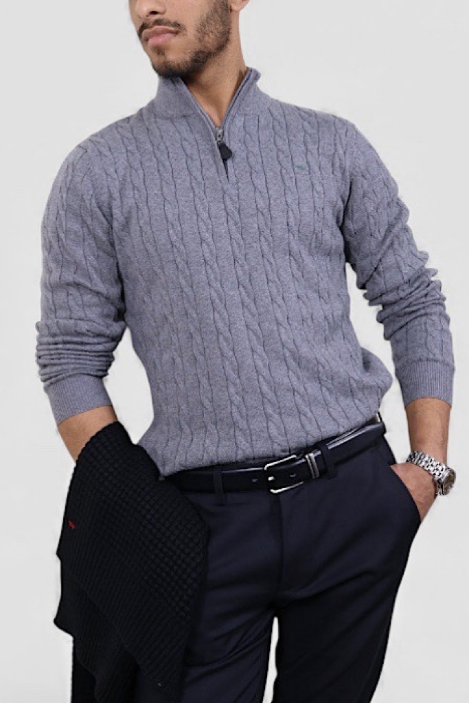 סריג צמות VACCI לגבר – חצי רוכסן סריג אלגנטי בגוון אפור עכבר, מעוצב בדוגמת צמות עשירה המעניקה עומק, טקסטורה ומראה חורפי יוקרתי ונקי הסריג עשוי 100% כותנה איכותית, נעימה, נושמת ומלטפת, לנוחות מושלמת לאורך כל היום כולל חצי רוכסן המאפשר התאמה אישית ללוק – סגור למראה קלאסי או פתוח למראה קליל ומעודכן.בחירה מושלמת ליום-יום, לפגישות ולאירועים, ומתאים במיוחד לשילוב מעל חולצה מכופתרת לסטייל אלגנטי ומוקפד