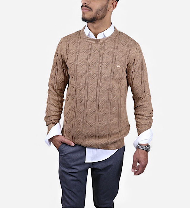 סריג צמות VACCI לגבר גוון חאקי בהיר