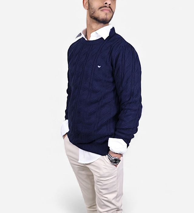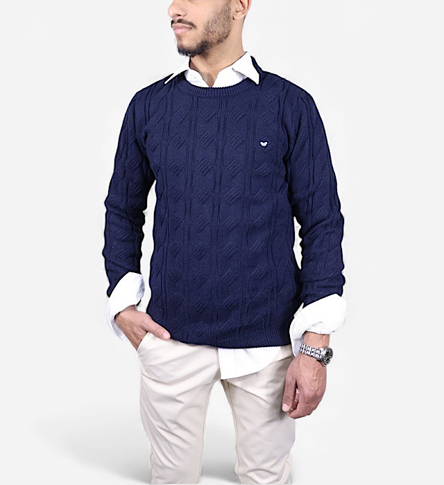סריג צמות VACCI לגבר גוון כחול כהה