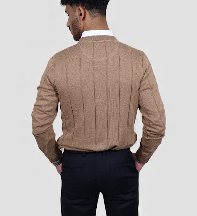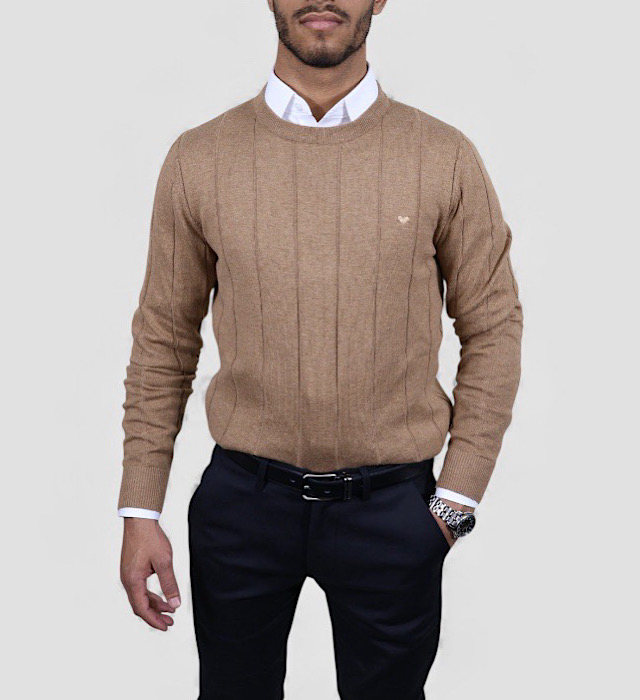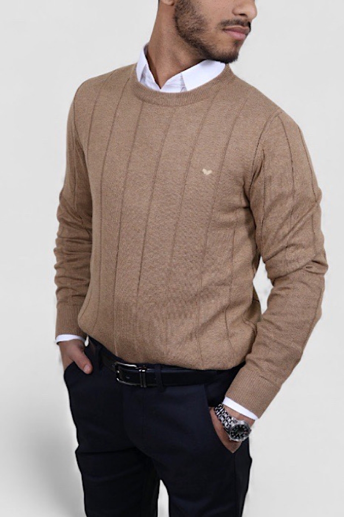 סריג VACCI לגבר 100% כותנה איכותית סריג אלגנטי בגוון חאקי בהיר, מעוצב בטקסטורה פסיים אנכיים המעניקה מראה חורפי יוקרתי ונקי.עשוי מ־100% כותנה נעימה, נושמת ומלטפת מושלם ליום יום ולמפגשים ,ומתאים לשילוב מעל חולצה מכופתרת או לבוש קז’ואל מוקפד