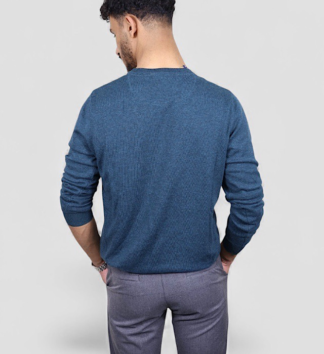 סריג VACCI לגבר 100% כותנה איכותית סריג אלגנטי בגוון מלאנז' כחול - ירקרק,מעוצב בטקסטורה מחורצת המעניקה מראה חורפי יוקרתי ונקי.עשוי מ־100% כותנה נעימה, נושמת ומלטפת מושלם ליום יום ולמפגשים ,ומתאים לשילוב מעל חולצה מכופתרת או לבוש קז’ואל מוקפד