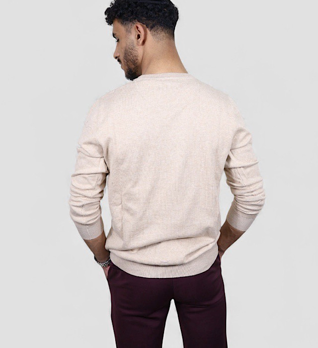 סריג VACCI לגבר 100% כותנה איכותית סריג אלגנטי בגוון שמנת מלאנז' בהיר, מעוצב בטקסטורה מחורצת המעניקה מראה חורפי יוקרתי ונקי.עשוי מ־100% כותנה נעימה, נושמת ומלטפת מושלם ליום יום ולמפגשים ,ומתאים לשילוב מעל חולצה מכופתרת או לבוש קז’ואל מוקפד