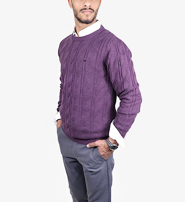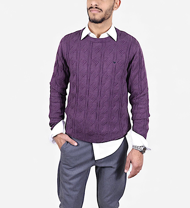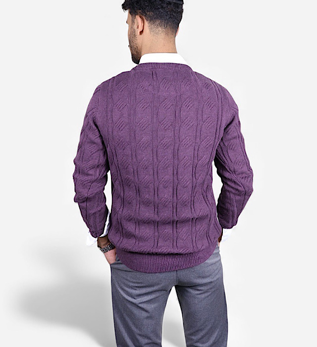 סריג VACCI לגבר 100% כותנה איכותית סריג אלגנטי בגוון סגול עמוק, מעוצב בטקסטורה מחורצת המעניקה מראה חורפי יוקרתי ונקי.עשוי מ־100% כותנה נעימה, נושמת ומלטפת מושלם ליום יום ולמפגשים ,ומתאים לשילוב מעל חולצה מכופתרת או לבוש קז’ואל מוקפד