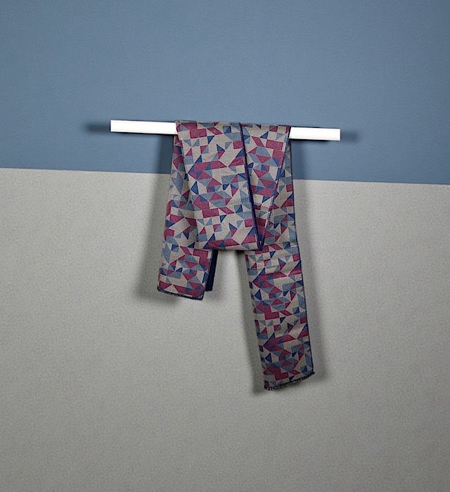 צעיף אקסוס לגבר בגוון שמנת עם דוגמת משולשים בגווני וורד כחול